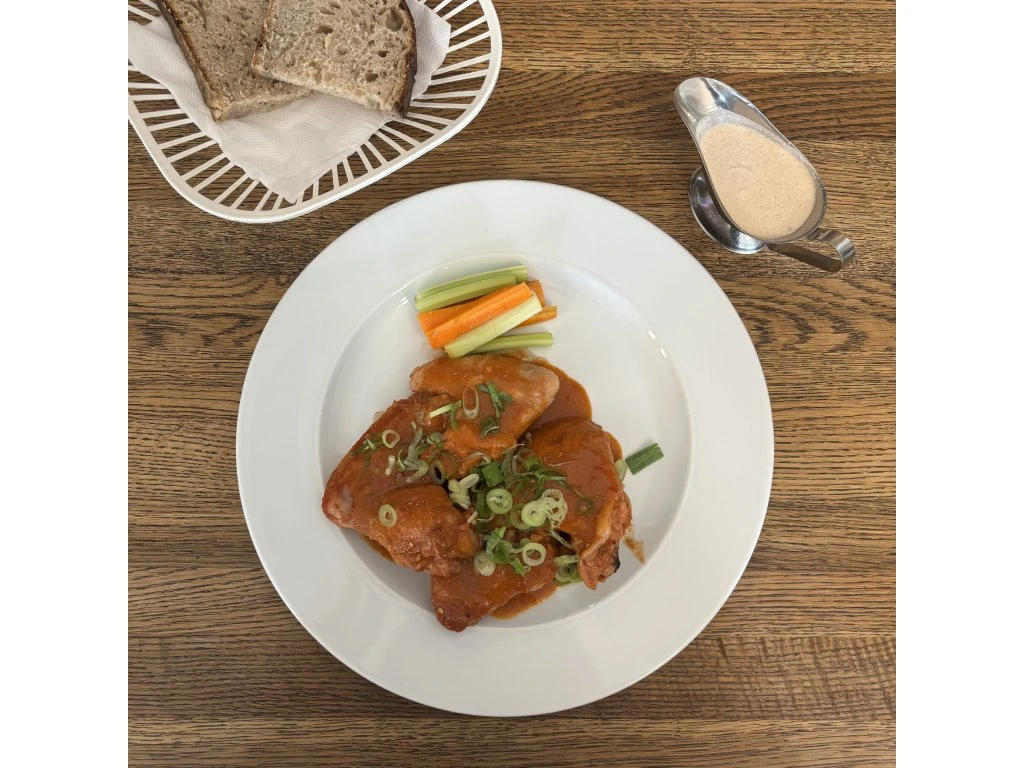 Pečená kuřecí křídla v chilli marinádě, chléb z Esky